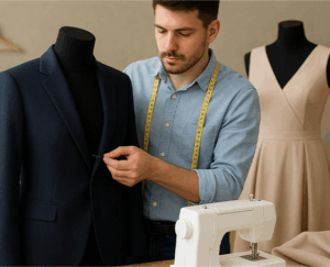 Our skilled team specializes in haute couture and bespoke creations, including tailored men’s suits and elegant garments.